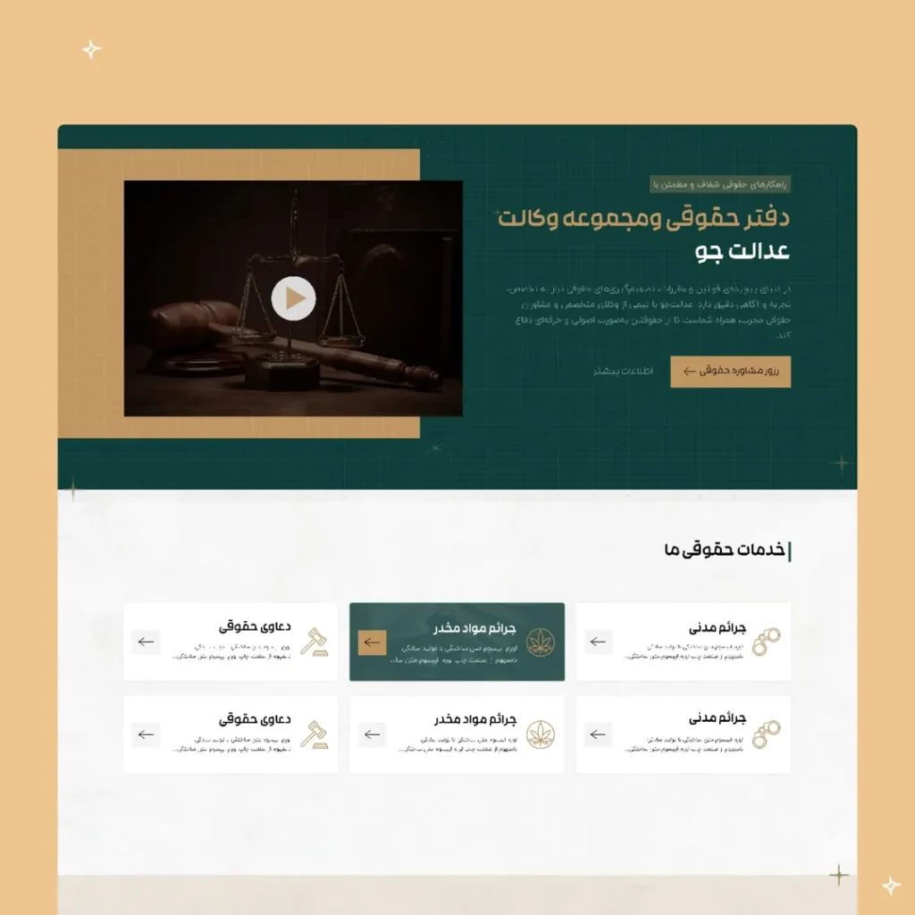 در وبسایت عدالت جو، تجربه دریافت مشاوره و خدمات حقوقی به سادهترین و قابل اعتمادترین شکل طراحی شده است. رابط کاربری ما به شما این امکان را میدهد که به سرعت موضوع حقوقی خود را جستجو کرده، وکیل یا مشاور مناسب را پیدا و درخواست خدمات کنید. با دستهبندی دقیق زمینههای حقوقی، توضیحات شفاف و امکان ارتباط مستقیم با متخصصان، عدالت جو همراه مطمئن شما در مسیر احقاق حقوق و حل مشکلات قانونی است.